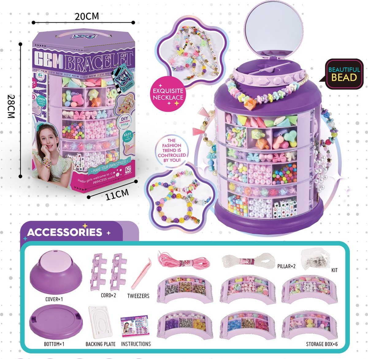 DIY Multi-Layer Beaded Jewelry Storage Box for girls and children ages 8+. This fashion bracelet-making set includes removable bead trays and complete jewelry-making supplies, making it an ideal birthday activity gift for young ladies. Organize, create, and express personal style with this comprehensive crafting solution designed for developing fine motor skills and creative confidence.