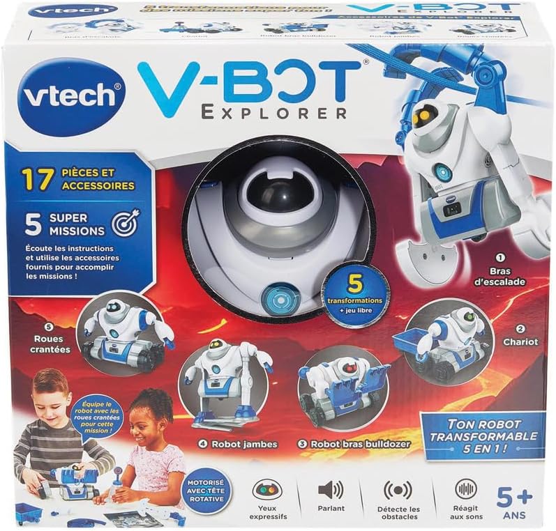 - The robot transforms thanks to its 17 parts and accessories: toothed wheels, robot legs, climbing arm, bulldozer arm and even mine cart.