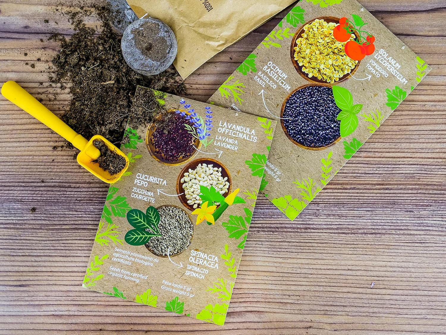 - Made entirely of recycled plastic, with biodegradable jars and organic seeds and a new simple and effective opening system to ensure the right habitat for seedlings.