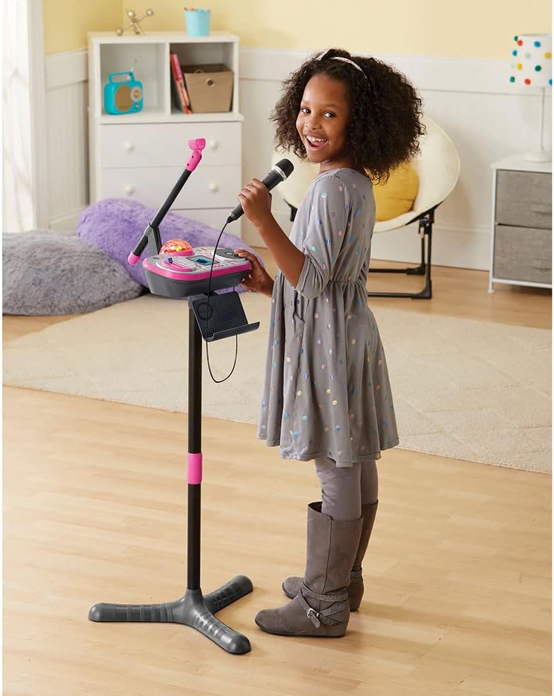 Height adjustable up to 1.35 m. Requires 4 x LR6-AA batteries included and compatible with VTech AC adapter (sold separately)
