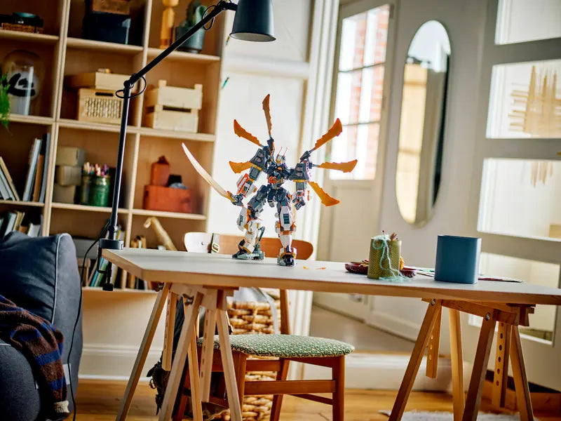 - Dragon wings and sword β The mech action toy also has a pair of dragon wings on its back, a large sword and a cockpit for the Cole minifigure under its head
