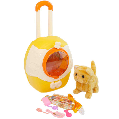 Soft Plush Kitten Companion - Interactive Walking Toy with Sound Effects This delightful plush kitten toy brings interactive play to life with realistic walking motion and authentic sound effects. Powered by batteries, the kitten moves forward while its tail sways naturally, creating an engaging experience for children. Choose from three distinct kitten varieties to find your favorite companion. The complete set includes practical accessories: decorative stickers for personalization, a durable leash for outdoor adventures, and a convenient carrying case for storage and transport. Perfect for imaginative play, this toy combines soft, huggable plush material with mechanical features that encourage active engagement and entertainment.